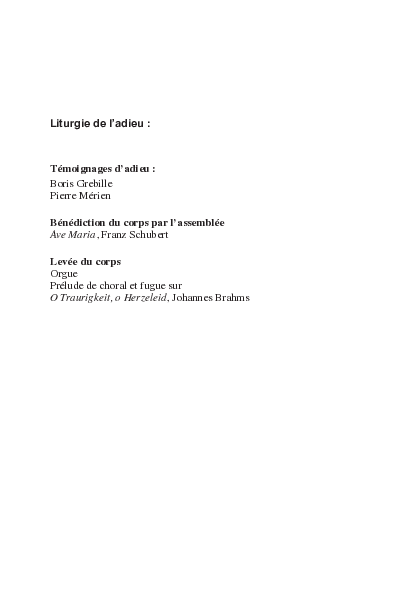 Bénédicte et les enfants, Alain, t’ont apporté beaucoup mais ils ont eu la chance de vivre auprès de toi. Cet échange réciproque ne s’interrompt pas avec ton départ. Ce n’est pas seulement par le souvenir de ta personne et par tes œuvres que tu restes présent parmi eux et parmi nous. Tu fais partie de ceux dont Suger, encore, souhaite : « Ut eant per lumina vera, ad verum lumen ». « Qu’ils parviennent par le moyen des lumières vraies à la vraie lumière. » De ce voyage, Alain, nous sommes venus ce matin, ici, à Saint-Germain des prés, pour être les témoins.