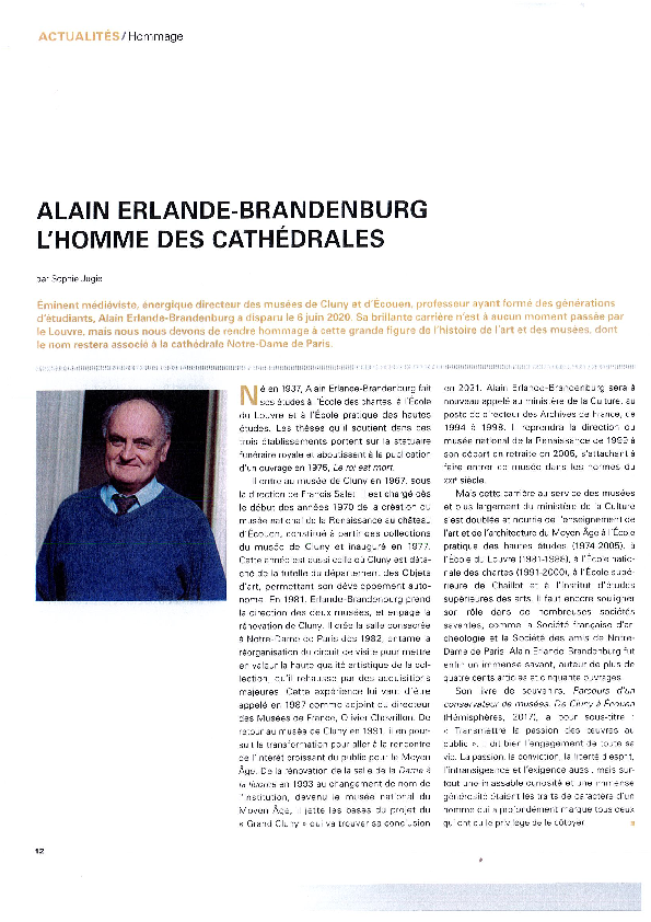 Arts NewsPapers : Disparition de l’historien de l’art et conservateur de musée Alain Erlande-Brandenburg